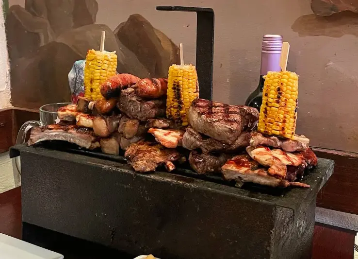 肉料理が中心で、特にアルゼンチン式のグリル(アサード)はジューシーで香ばしく、柔らかいステーキやリブはワインと合わせると絶品です。