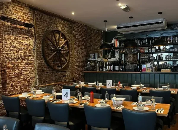 インテリア・雰囲気としては、モザイクタイルの床、木の小テーブル、ブラウンレザーの長椅子、そして「ニューヨークのビストロとフレンチブラッスリーを掛け合わせたような」空気が漂っており、写真映えするスポットとしても知られています。