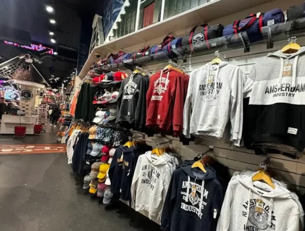 アムステルダム中心部、観光客が行き交う通りにある大型のおみやげ・ギフトショップです。