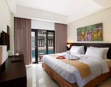 クタの中心部に位置するギャラリーブティックホテルで、ングラ・ライ国際空港から車で約15分、バリの有名なギフトショップ「Joger」から徒歩圏内にあります。