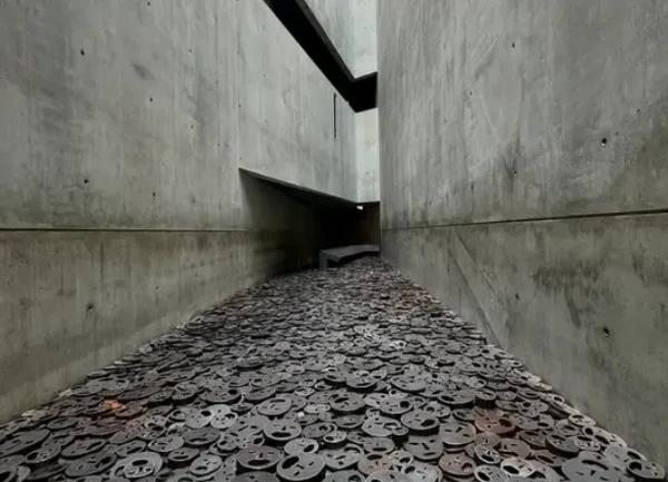 建物は建築家ダニエル・リベスキンドによる設計で、鋭い角度と迷路のような構造が特徴で、中に入ると、静寂と不安、記憶と喪失といった感情が自然と湧き上がってきます。