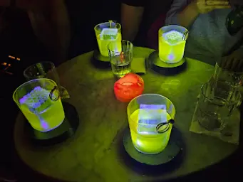 店内はモダンでおしゃれな雰囲気で、夜にはライブミュージックやイベントも開催されることがあります。