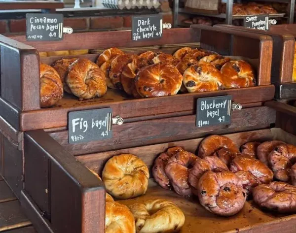 ここのパンは素材にこだわり、済州産の黒豚や柑橘類を使った惣菜パンから、伝統的なフランスパンやデニッシュまで種類豊富に揃っています。