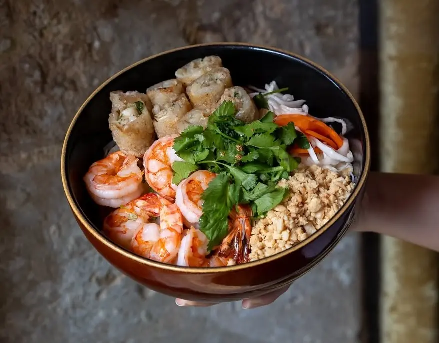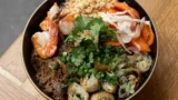 メニューはベトナムやタイ、韓国、中華料理をミックスしたような料理が中心で、特に“ボボン(Bò Bún)”というベトナム風ヌードルサラダが大人気。フレッシュな野菜、香ばしいピーナッツ、甘辛ソースの絶妙なバランスがクセになるかも。