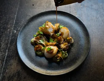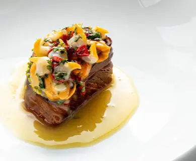 アレノは「モダン・キュイジーヌ」を提唱し、特にソースの再構築で知られています。従来のソース作りを科学的に分析し、新しい抽出技法を取り入れることで、より軽やかで繊細ながらも深みのある味わいを実現。クラシックの美学を尊重しつつも革新を追求する姿勢が、世界の美食家を魅了しています。