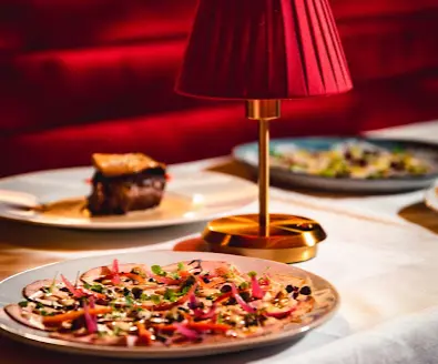 レトロでジャズ調の内装が特徴で、ディナータイムはフレンチや地中海料理を楽しめ、夜になるとライブミュージックやDJパフォーマンスで賑わいます。