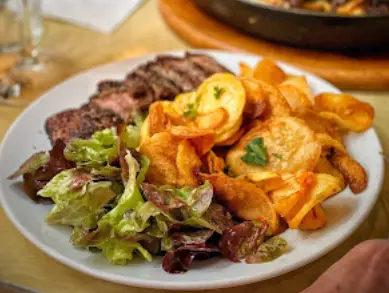 メニューは伝統的なフレンチ料理が中心。オニオングラタンスープ、ブフ・ブルギニョン、クレームキャラメルなど良心的な価格で提供され、全体で20 €以下の食事が叶う手軽さが魅力です。