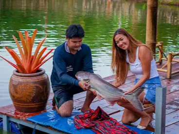 園内には巨大な淡水魚や珍しい魚種が多数飼育されており、釣り竿を使って直接釣ることができる体験型の施設となっています。
