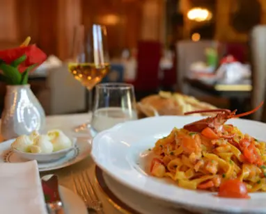 料理は、カルボナーラやリゾット、グリルしたラム肉など、イタリアの伝統的な料理が中心で、特にシーフードパスタが好評です。