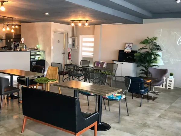 ガラパン中心地にあるコーヒーショップで、明るく清潔感のある店内が印象的でした。