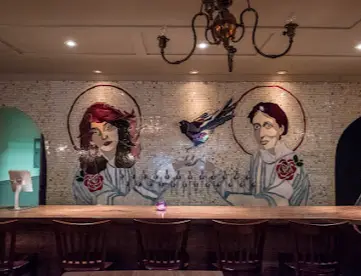 ビビッドな色使いとレトロなメキシカンキッチュな装飾が特徴で、ネオンのサインやカラフルな壁紙が目を引きます。