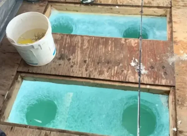 ガスストーブで暖められた快適な移動式小屋で、冬の釣りも快適に体験できます。