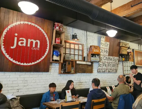 人気メニューには Tom & Jerry Cheesecake(チーズケーキ)、Strawberry Pot などのスイーツのほか、Spicy Pork Bulgogi Wrap などアジア風味を取り入れた創意ある軽食が並びます。