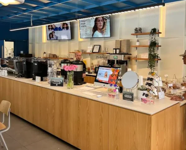 このカフェの特徴は、メガネとカフェが一体となった新しい形態です。